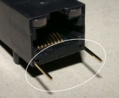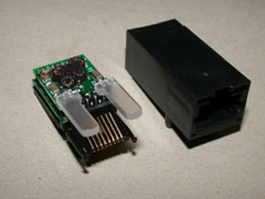| コネクタを分離するとこんな感じ | 右はXport、左はRJ45コネクタ 大きさも似たようなもの、 ピンの数と位置も同じ |