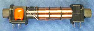 キットで使われているバーアンテナは(下の写真)のような構造をしています。40KHzにしては太めの電線で少な目の巻数です。コアも昔の6石スーパーラジオで使われていたような、今見ると少し大きめの形状です。しかし、紙製のボビンとかではなく、プラスチック製で自作で手巻することを前提に作ったような立派で高そうなボビンになっています。