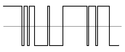 受信機で受信される生の信号は、受信状態によっては、ノイズが混じります。このような状態の時は、受信機の信号を、オシロスコープでみると(左下の図)のようになっています。このようにノイズが混じっていても、信号全体から平均値を取って、その比較として信号を処理すると、正しい信号として判別可能な場合も多くあります。ひょっとすると、このような処理をした信号でLEDを点滅させているのかもしれません。