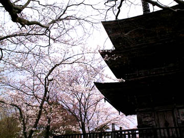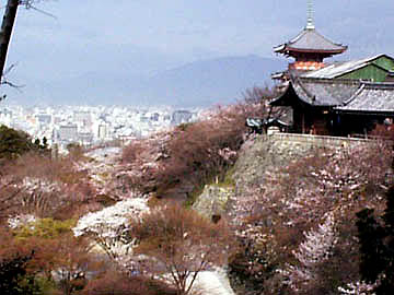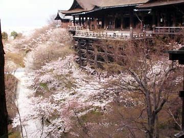 清水の舞台の下にも桜が広がります この写真の左下の方に「音羽の滝」があります