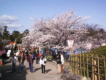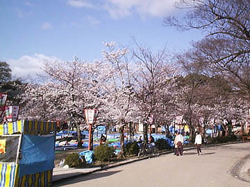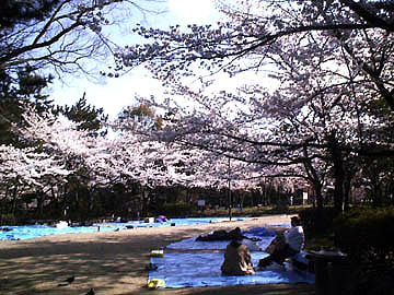 青いシートは今日のお花見の場所取り