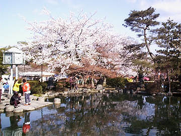 ちょうどしだれ桜の東側にある池