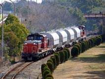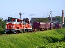 知多半島の付け根、衣浦湾の両側に造成される臨海工業地帯の原材料、製品輸送のほか、地元で古来生産されている製品を輸送する目的で設立された第3セクターの貨物専業鉄道です。当社は直接線路がつながらない半田線(武豊線東成岩から分岐)と碧南線(同東浦から分岐)の両線がありますが、碧海を走る碧南線の貨物列車をご紹介します。