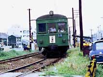 しかし、1970年代当初には当線のラッシュも激化しつつあり、朝の運用に不向きなこの車両では車掌氏が手動ドアを閉め切るのに四苦八苦という光景もよく見られました。お堀の景色によく似合う車両でしたが、1973年の瀬戸線全車自動扉化で廃車となりました。