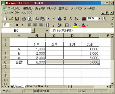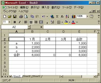 上の表では2月、3月が未入力のため合計に0が表示されています。