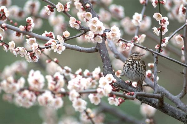 梅林でビンズイが梅の木に良い具合に止まってくれました。