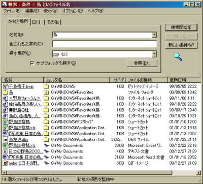 見つかったファイルやフォルダをクリックして開くことも出来ます。