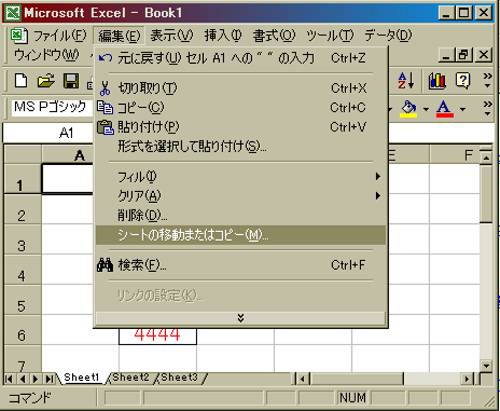 方法は編集メニューのシートの移動またはコピーを選択します。