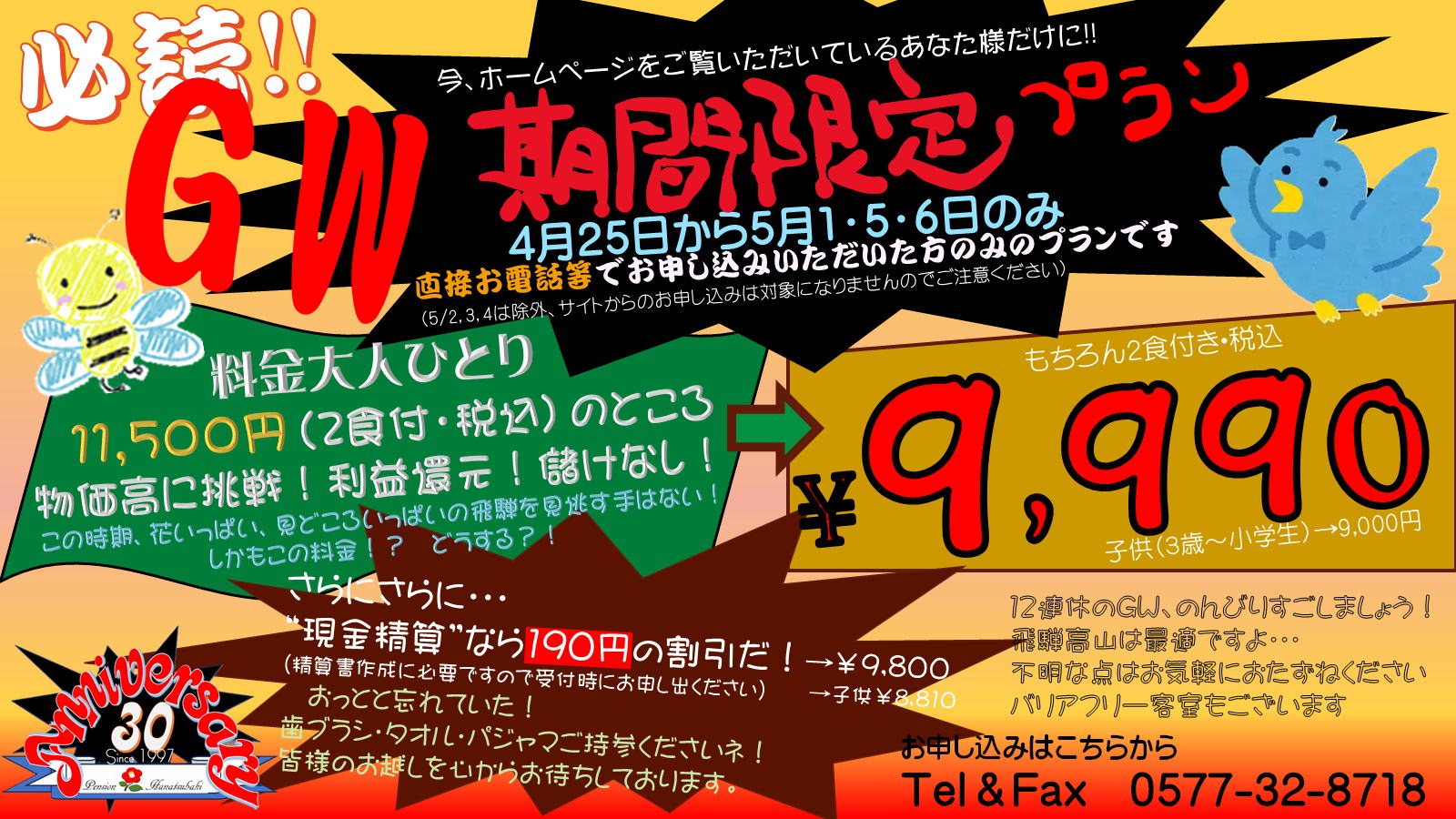 GWのプラン受付中‼ Tel. 0577-32-8718