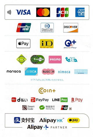 ![]() クレジットカード、QRコード使えます ほとんどのカード類が使えます 受け付け時にお申し出ください 使えないカード類もございますので、 必ずご確認ください 決済方法について受付時におききします |