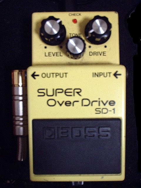 DS−1とSD−1でメインの音を作っています。SD−1は、ブースターとして使用しているので、セッティングはレベル1時〜3時、トーン10時〜11時、ドライブは少し上げる程度です。DS-1だけだとシングルピックアップのせいか自分の腕がないせいか音に厚みが足りないので・・・という感じです。 |