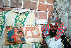 夕方、ラリベラ郊外の山腹の洞窟にあるナクタラブ教会へ。12世紀にナクタラブ王によって造られたのもで、洞窟からしたたり落ちている水は聖水とされています。独特の衣装を着た司祭の方が、クロス(十字架)や手書きの本などを見せてくれました。