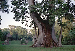 遺跡入口の船着き場に降りた途端に、信じられないほど多くの蚊の集中砲火が始まります。全身に虫除けを撒いて、蚊取り線香をモクモク焚いてもものともしません。遺跡には小さな神殿と細かい彫刻の施されたステラが何本かありましたが、説明を聞いてる間もちょっと油断すると蚊にやられてしまいます。でもジャングル探検のようで面白かったけど。