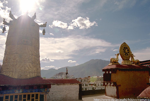 7世紀にソンツァンガンポがラサのジョカン寺の縮小版として建立したといわれるチベットで最も古い寺の一つです。このお寺の見ものは7世紀の刺繍のタンカと細かい真珠で作られたタンカです。チベットのお寺の境内ではよく犬を見かけましたが、ここでは屋根の上を歩いていたのでびっくりしました。
