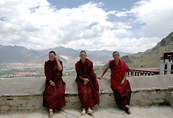 ラサの北にあるゲルク派の僧院で、1419年にツォンカパ大師の弟子ジャムチェン・チュジェ・サキャ・イェシェにより創建されました。ここは日本人の僧侶、河口慧海や多田等観がチベット仏教を学んでいた寺院としても知られています。裏山には鳥葬台があって、その上空に不気味に旋回する鳥の群れを見ました。