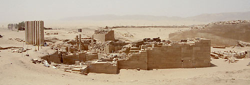 8本の柱が特徴的な太陽の神殿は、紀元400年頃に造られたもので、365の部屋があるという神殿本体は、砂の中に埋もれているといわれています。現在、アメリカの考古学チームが発掘中で2重の柵が張り巡らされ、近づいて見学することができませんでした。銃を担いだ発掘作業員たちが日本人を珍しく思ったのか押し寄せてきて、逆に私達の方が見られている気がしました。砂漠に突き出た柱に子供が登っている昔のマーリブ遺跡の写真と比べると、発掘作業が進んでいることが分かります。