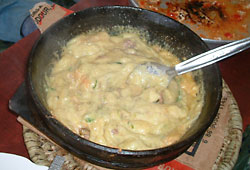 昼食はシバムの民家風レストランでイエメンの郷土料理をいただきました。サルタという石鍋料理は見た目とは違い苦味のある煮込み料理でした。他には野菜や炒め物や卵料理、デザートには蜂蜜のかかったパイなど。熱い料理を手で一気に平らげたドライバーさんたちの食事風景も見ものでした。