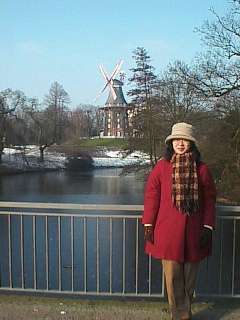 ブレーメン駅から街の中心へと歩いていくと、途中に細長い池と風車が。バックの青空が見事なので全ての物が輝いて見える。おてんとうさま、どうもありがとう。ちなみにここでもまだ雪が溶けずに残っていた。