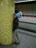 そのうち、Trinkhalleのライブ演奏が佳境に入ってくると、みんなイスに立ち出す。イスの上から見渡せば、遠くのお客さんとも目が合い、自然とグループの輪が広がっていく。右の写真は、ミラノから車で来たという若者達。ミュンヘンは、ハノーファーからよりもミラノからの方が遙かに近いのであ〜る。ま、地理的な理由を抜きにしても、このお祭りには全世界から観光客が押し寄せてくるのであ〜〜〜〜る。