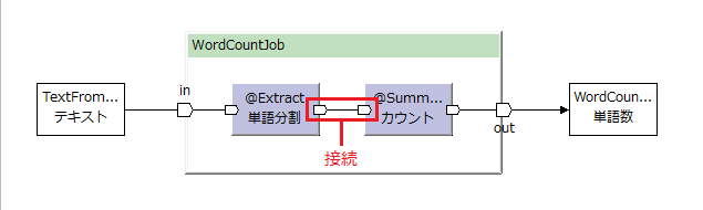 これを、出力ポートと入力ポートを(演算子同士を)接続するとか結線すると言う。
