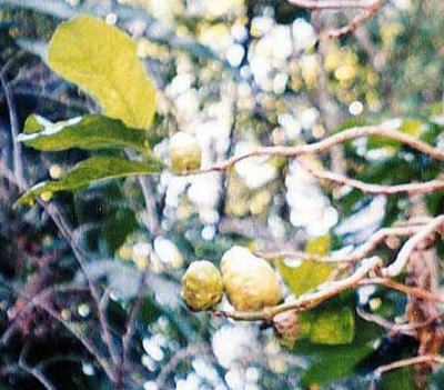 木に成っている時はそんに臭いませんが、熟してくるとすごい臭いになるそうで、加工品として出回っています。 |