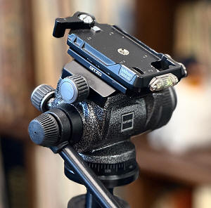 Gitzoのトラベル・カーボン三脚(1、2型)は梅本のボール・ヘッド(小、中)が常時装着されていて、撮影に大活躍中だ。そこで本機には、30数年前に購入したGitzoの金属脚小型三脚に、Gitzo GHF2W 雲台を載せて、さらにVelbonのクイック・シュー QRA-6Lを装着している。これだと、Obsession 25"と同じクイック・シューなので、何もいじらなくても即、架台に載せて即観望できる。また、この三脚はエレベーター機能付きなので、観望に具合が良い。