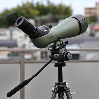普段は、トラベラー軽量カーボン三脚2型に Gitzo GHF2W 雲台を載せて使用。三脚+雲台の重さは2.0s、99A+TE-11WZ II は2.3sなので、架台込みの総重量は4.3sとなった。片手でも外に出して即見ることができる、お気軽・お手軽望遠鏡だ。