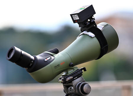 小淵沢の望遠鏡オフ会で、このスコープと名だたる名望遠鏡とを比較した。標準アイピースの範疇では、けっこう互角で奮闘した。ただ、本体のレンズ・フードの溝だけでは天体を導入するのは難しい。導入までけっこう時間がかかってしまった。以前もファインダーを装着したことがあったが、もっと安定して装着させたい。今回はフードと本体の隙間に、Sky Surfer III の足をカットしたものを挟む形で行った。この方法だと、左右のブレがなくなる。台座にはゴム糸を通して本体に固定した。