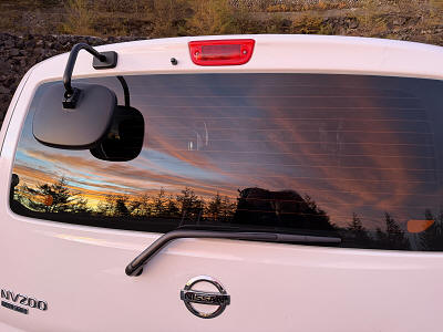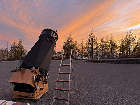 当日、夕焼けがきれい! しかし、夕焼けがある、ということは雲がある訳で、雲の隙間から観望と相成った。-4℃まで冷え込み、さすがに寒かった。