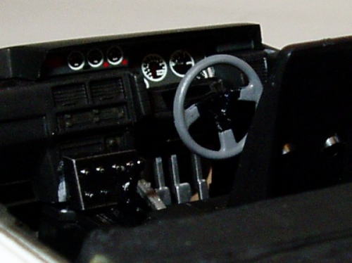 室内は、もう、市販車そのままで、メーターのデカールがレースっぽいのと、後ろ側のみ申し訳程度のロールケージがついてるのみ。