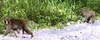 標高1350mの登山口,三股に到着すると,これから歩く道の20〜30m向こうを猿が 歩いていた.9:30に出発して林道を5分も歩かないうちに右手の土手に10数匹の 猿の群れを見た.9:45には,かつての登山口で常念岳との分岐点に到着.ここか らは登山道.割と新しい吊り橋で沢を渡り林の中をしばらくは登った.あまり視 界の開けるところはなくひたすら登る.11:10〜20,休憩.