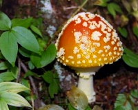 長塀山からの下りは,ずっと林の中の単調で割りに急な坂道で,ひたすら下り続 けた.途中,絵本にでも出てきそうな立派なキノコ(写真)を見つけた.12:35〜 12:45 休憩.
