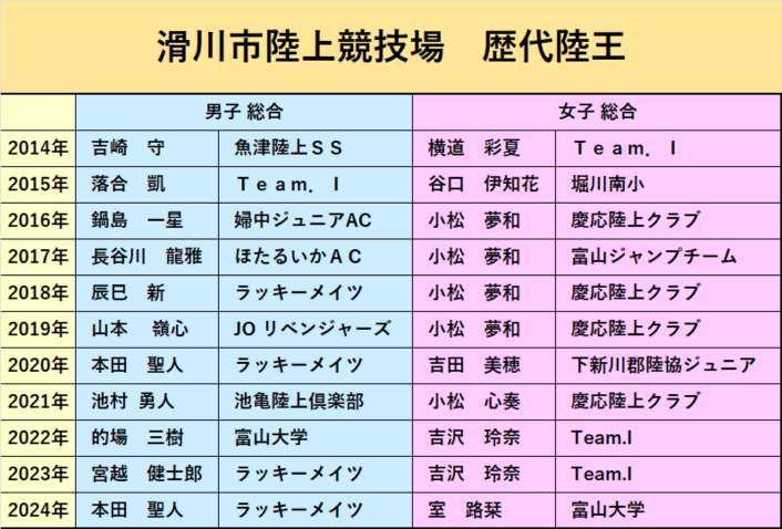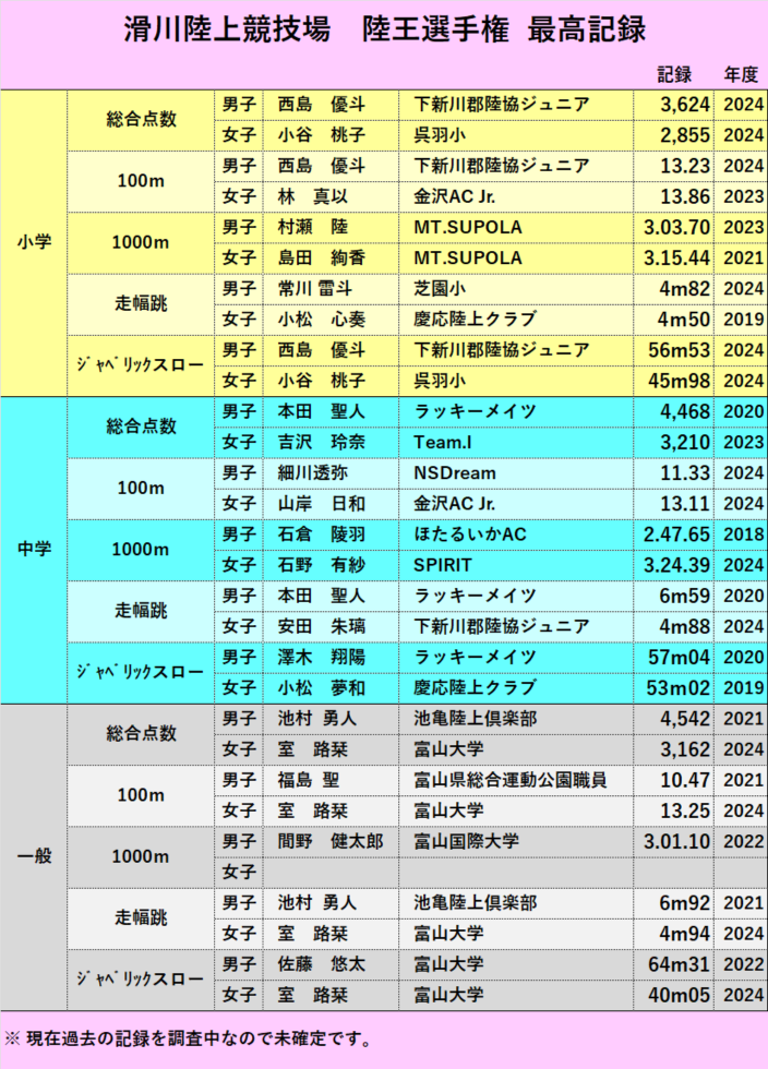 陸王選手権 学年別結果 女子