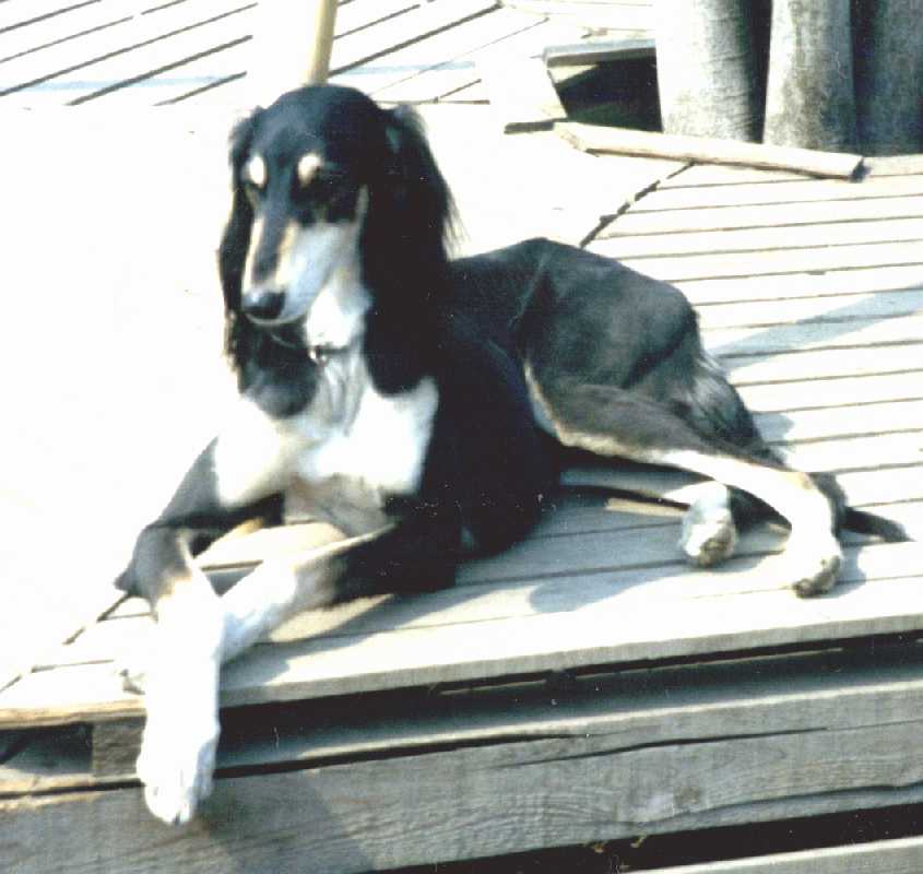 でも なかなか良い牡犬がいません あれこれ考えて サルーキの本場アメリカなら良いお婿さんが見つかるかも知れない!早速 ハンドラーの須田さんに相談、しかし 彼は少し消極的でした 何でも アメリカのサルーキのブリーダーさん達は日本に対してあまり良い印象を持っていなかった様です、それは日本人の犬の飼い方が悪くサルーキも屋外で小さい犬小屋にクサリにつないで飼っていると思われていたようです、しかしそれは とんでもない誤解です それに今後 良い血統の犬が入らないなら日本のサルーキはダメになる!この熱い思いを伝える為に再度お願い そして待つこと1年近く、 トレツキーの話が舞込んできました、シーウインズの牡犬で当時3歳半 色はブラツク、写真は後日送られてくる との事 しかし 私は写真をみる前に即 OK