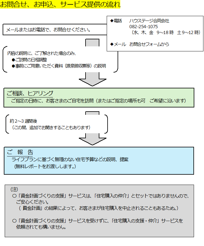 (「資金計画づくりの支援」サービスを受けずに、「住宅購入の支援・仲介」サービスを依頼されても構いません。)