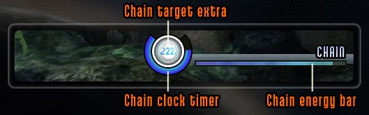 ![]() コンボのようなもの。敵を倒すとチェーンリングが出現する(一定時間で消滅)。これを集めるとチェーンエネルギーがたまり、ゲージが満タンになるとチェーンが完成、表示中のアイテムが出現する。ただしチェーンクロックがゼロになると、チェーンエネルギーが減少してしまう。チェーンリングを取れば、チェーンクロックは回復する。また、ショットを撃たずにいれば、チェーンクロックを回復できる(最大50%まで)。 |