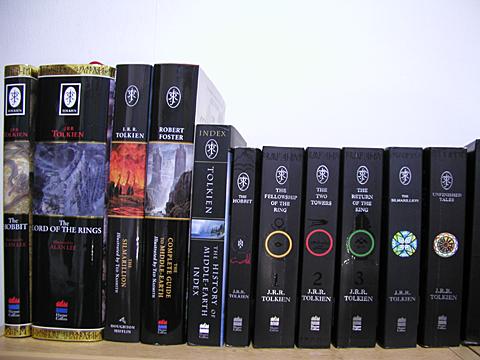 但し、 LotR のアラン・リー挿絵1巻本は、 サイズの横幅が他より少し短いので本棚に入れたときの奥行きに差は出ます。 また本書では参照に対応していません。 アラン・リー挿絵入り LotR 原書は、2002年出版の3巻本(英国 HarperCollins 版 ISBN:0-007-13658-7 / 米国 Houghton Mifflin 版 ISBN:0-618-26058-7)が、 本のサイズとカバーデザインに統一性があるようで、 参照も本書で対応しています。
