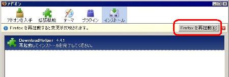 インストールが終了したら、「Firefoxを再起動」で有効になります。