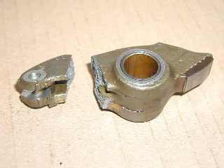 | 正常なロッカーアームとぶっかけたロッカーアーム。 | カムとのかみ合わせ部の磨耗がかなり目立ちます。 |