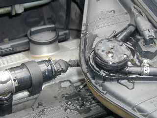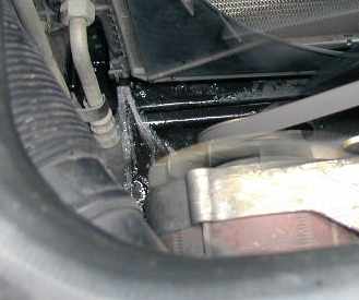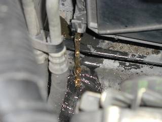 | アンダーカバーを伝って下に流れます。 | 水が抜けたら綺麗な水を注入、 ドレンを開けたまま流し続ける。 |