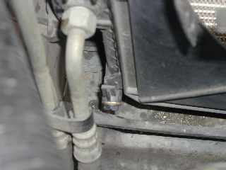 | ラジエーター下部にあるドレンボルト、 これを外して冷却水を抜きます。 |