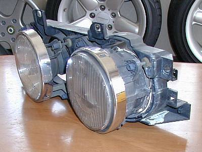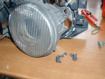 | 片目がとれました、タオル等でバンパーなどにキズを 付けない配慮をしました、配線関係はユニットを 一旦引き出して、タオルの上(バンパーの上)で作業 すれば楽です、ポジション球、遠目近目、それと 上下調整モーター、接続コネクターはパキパキと 折れやすいですから要注意っす! |