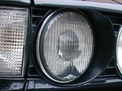これが現状のライト、国内仕様、年式も古いつー事で レンズ内の曇り黒ずみが見受けられます。 それに暗い〜暗すぎ〜雨の夜は先ず 役に立ちません・・・ |