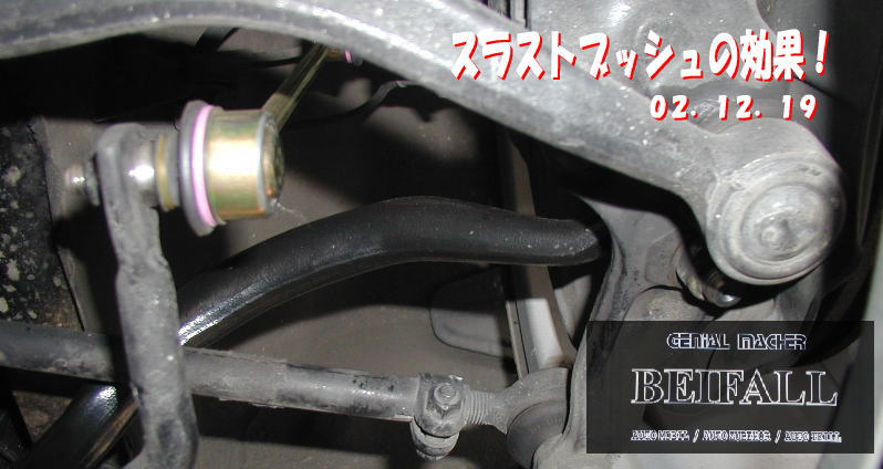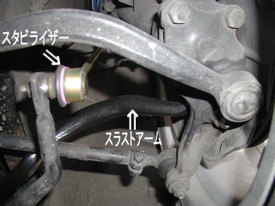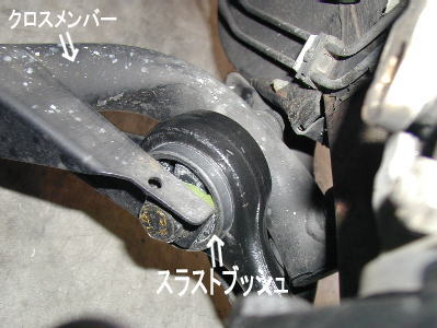 メンバーとスラストアーム(ブッシュ)との取り付け角度もタイヤが接地している状態を想定しての取り付け!