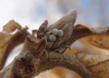 カシワの芽にはこのような卵塊で生まれることが多かった。