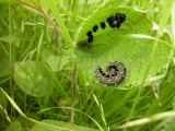 この幼虫は見つけやすい。葉を袋状にして巣を使っているから。