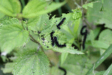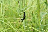 学会で初めて北海道(札幌)を訪れた時、時間の合間に定山渓へ出かけたら、この幼虫が沢山いた。容器を持っていなかったのでビニール袋に食草と一緒に入れて、旅行鞄で九州へ持ち帰った。帰り着いて鞄を開けると、袋からでた幼虫たちが鞄中をはい回り、至る所で糞をしていたので、後が大変だった思い出がある。