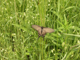 クロアゲハとよく似ているが、胴体に赤い斑点が入る。毒々しいと感じるのだが、実は食草のウマノスズクサには毒があり、この草は馬も食べない。蝶自体にもこの毒が受け継がれて、鳥も食べないようだ。