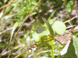 人の気配に敏感でなかなか撮影させてくれないこの蝶も、早朝の下草が濡れている時間帯には不活発だった。