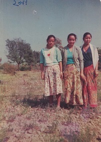 ティルさんがSLC学校教育卒業試験(高校卒業試験)を受けた年に撮ったというこの写真。2044とビクラム暦の記載があり、西暦に換算すると1987年4月中旬から1988年3月中旬。プンマガルの親戚ら3人と並んでいます。「一人はルクマヤディディで、もう一人はバンドゥーダイのお嫁さん」とのことです。